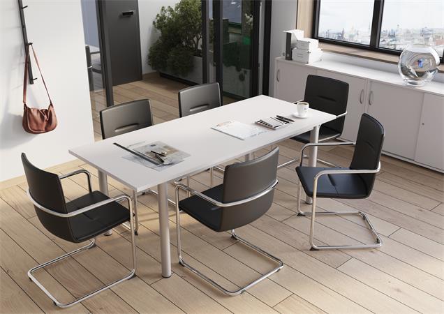 Tárgyalóasztal, szürke fémlábbal, 80x190 cm, MAYAH "Freedom SV-42" fehér