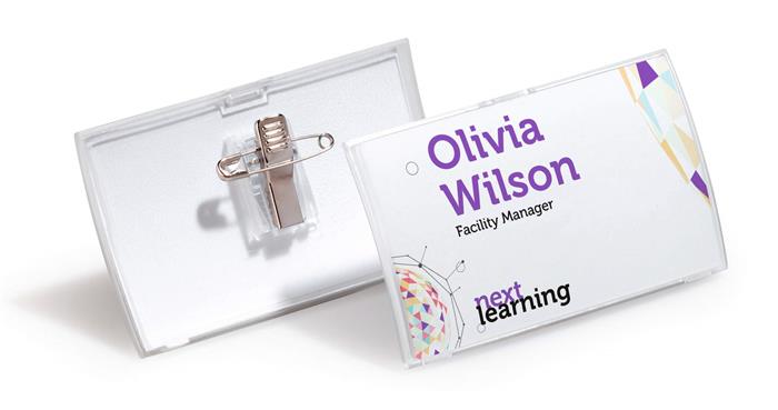 Névkitűző, csíptetővel és tűvel, PP, 40x75 mm, DURABLE "CLICK FOLD"