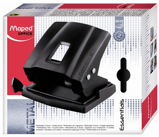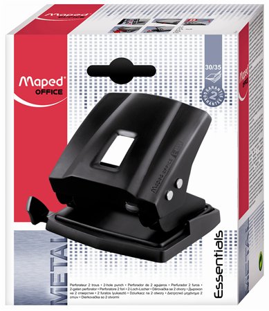 Lyukasztó, kétlyukú, 35 lap, fém, MAPED "Essentials 35", fekete