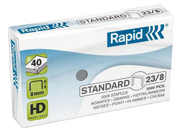KezdőlapIrodaszerekIrodai kisgépekTűzőkapcsokTűzőkapocs, 23/8, horganyzott, RAPID "Standard"