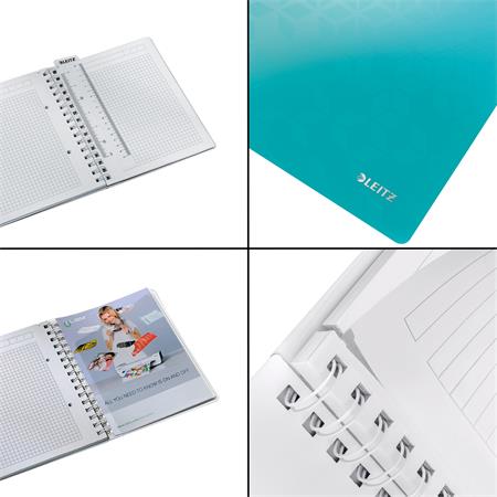 KezdőlapIrodaszerekIrodai papíráruFüzetek, gyűrűskönyvbetétekSpirálfüzet, A5, kockás, 80 lap, LEITZ "Wow", jégkék