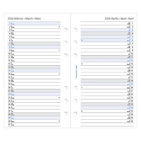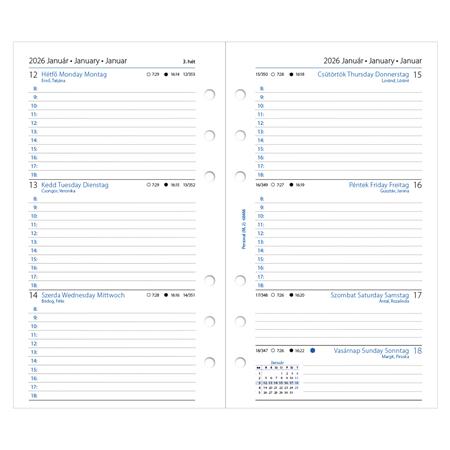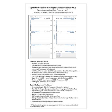 Kalendárium betét, tervező, Filofaxhoz, personal méret, heti, 1 hét/2 oldal, 2026