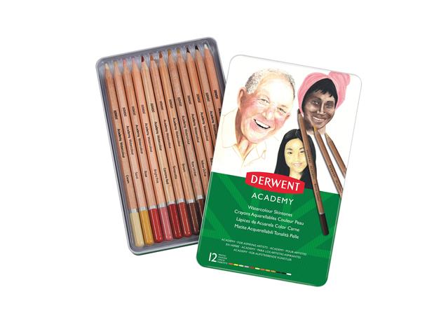 Akvarell ceruza készlet, DERWENT "Academy", 12 különböző szín