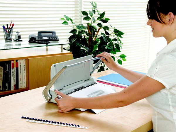-teljes szélességben átfogó, két oldalt rögzített lyukasztókar, mely minimalizálja a szükséges erőkifejtést
