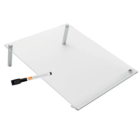 Ez a modern, keret nélküli, döntött kialakítású, otthoni irodai fehértábla tökéletes jegyzeteléshez, gondolatok, ötletek vagy fontos dátumok feljegyzéséhez. A döntött kivitelnek köszönhetően optimális írási pozíciót biztosít. Kényelmesen elfér bármilyen íróasztalon vagy egyéb munkafelületen, és észrevétlenül beleolvad a környezetébe, amikor nincs használatban. A szárazon törölhető, akril felület könnyen tisztán tartható, egyszerűen írjon rá, törölje le és kezdheti elölről. Tartozék: 1db táblatoll. Méret: A4.