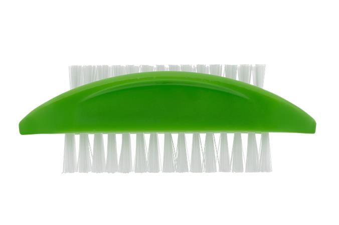 Kétoldalas műanyag körömkefe, műanyag szálakkal.