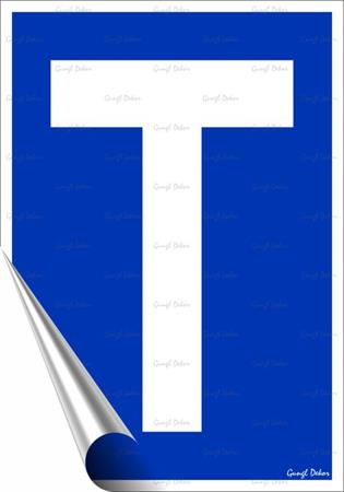 - kék alapon fehér T betű