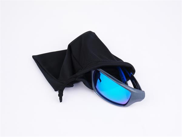 Sportnapszemüveg füstszínű polarizált lencsével, szürke műanyag kerettel.