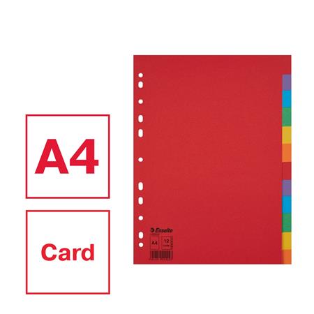 Regiszter, karton, A4, 12 részes, ESSELTE "Economy", színes