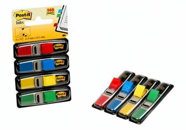 Jelölőcímke, műanyag, 4x35 lap, 12x43 mm, 3M POSTIT, vegyes