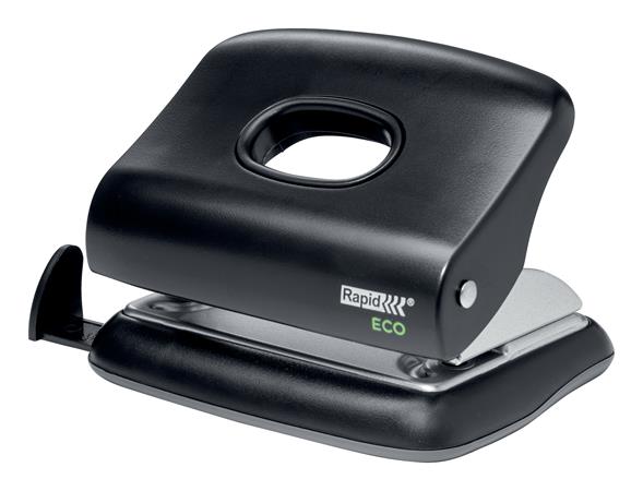 Lyukasztó, kétlyukú, újrahasznosított, 20 lap, RAPID "Eco 20", fekete