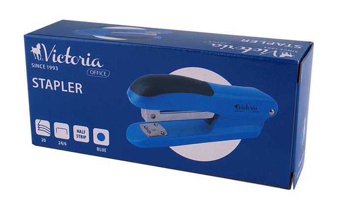 Tűzőgép, 24/6, 20 lap, VICTORIA OFFICE, "Half-Strip", kék