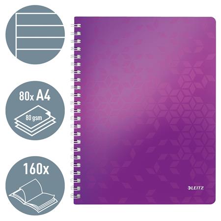 KezdőlapIrodaszerekIrodai papíráruFüzetek, gyűrűskönyvbetétekSpirálfüzet, A4, vonalas, 80 lap, LEITZ "Wow", lila