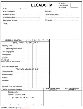 Nyomtatvány, előadói ív, szabadlap, A4, négyoldalas, "C.5230-182"