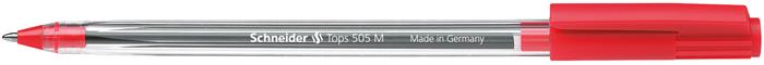 Golyóstoll, 0,5 mm, kupakos, SCHNEIDER "Tops 505 M", piros