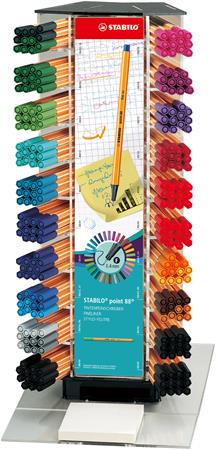 - display tartalma: 6-6 db ultramarin, sárga, barna, narancssárga, azúrkék, sötétzöld, okkersárga, világos szürke, szürke, 12-12 db jégzöld, világoszöld, karmazsin bordó, türkiz, sötétlila, rózsaszín, lila, 18 db zöld, 24 db piros, 24 db kék, 36 db fekete "Point 88" tűfilc