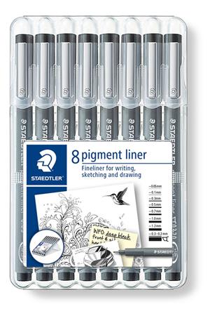 Tusfilc készlet, 8 különböző vonalvastagság, STAEDTLER "Pigment liner 308", fekete