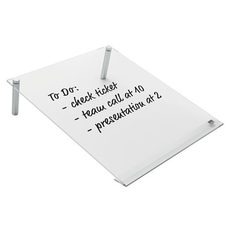 Ez a modern, keret nélküli, döntött kialakítású, otthoni irodai fehértábla tökéletes jegyzeteléshez, gondolatok, ötletek vagy fontos dátumok feljegyzéséhez. A döntött kivitelnek köszönhetően optimális írási pozíciót biztosít. Kényelmesen elfér bármilyen íróasztalon vagy egyéb munkafelületen, és észrevétlenül beleolvad a környezetébe, amikor nincs használatban. A szárazon törölhető, akril felület könnyen tisztán tartható, egyszerűen írjon rá, törölje le és kezdheti elölről. Tartozék: 1db táblatoll. Méret: A4.