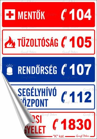 Segélyhívószámok információs matrica
