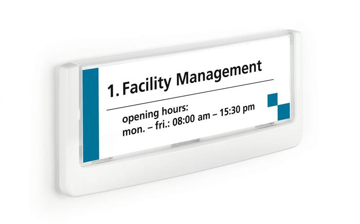 KezdőlapÜzemeltetésLétesítmény üzemeltetésInformációs és tájékoztató jelekInformációs tábla, 149x52,5 mm, DURABLE "CLICK SIGN", fehér