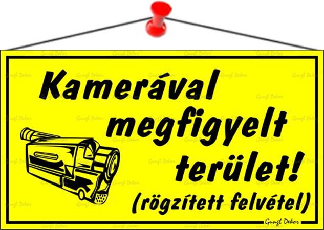 Információs tábla, 22,5x12,5 cm, "Kamerával megfigyelt terület", sárga